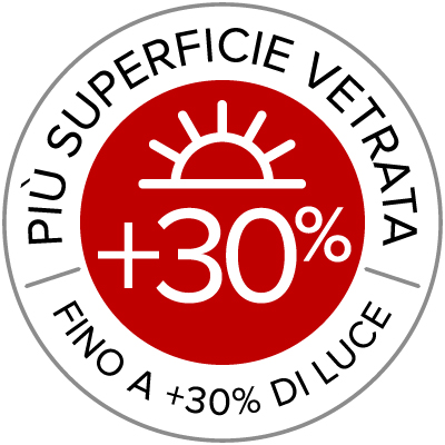 + 30% di luce, grazie alle sezioni ridotte che consentono di aumentare la superficie vetrata